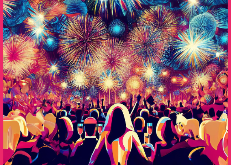 Midnight chimes and fireworks